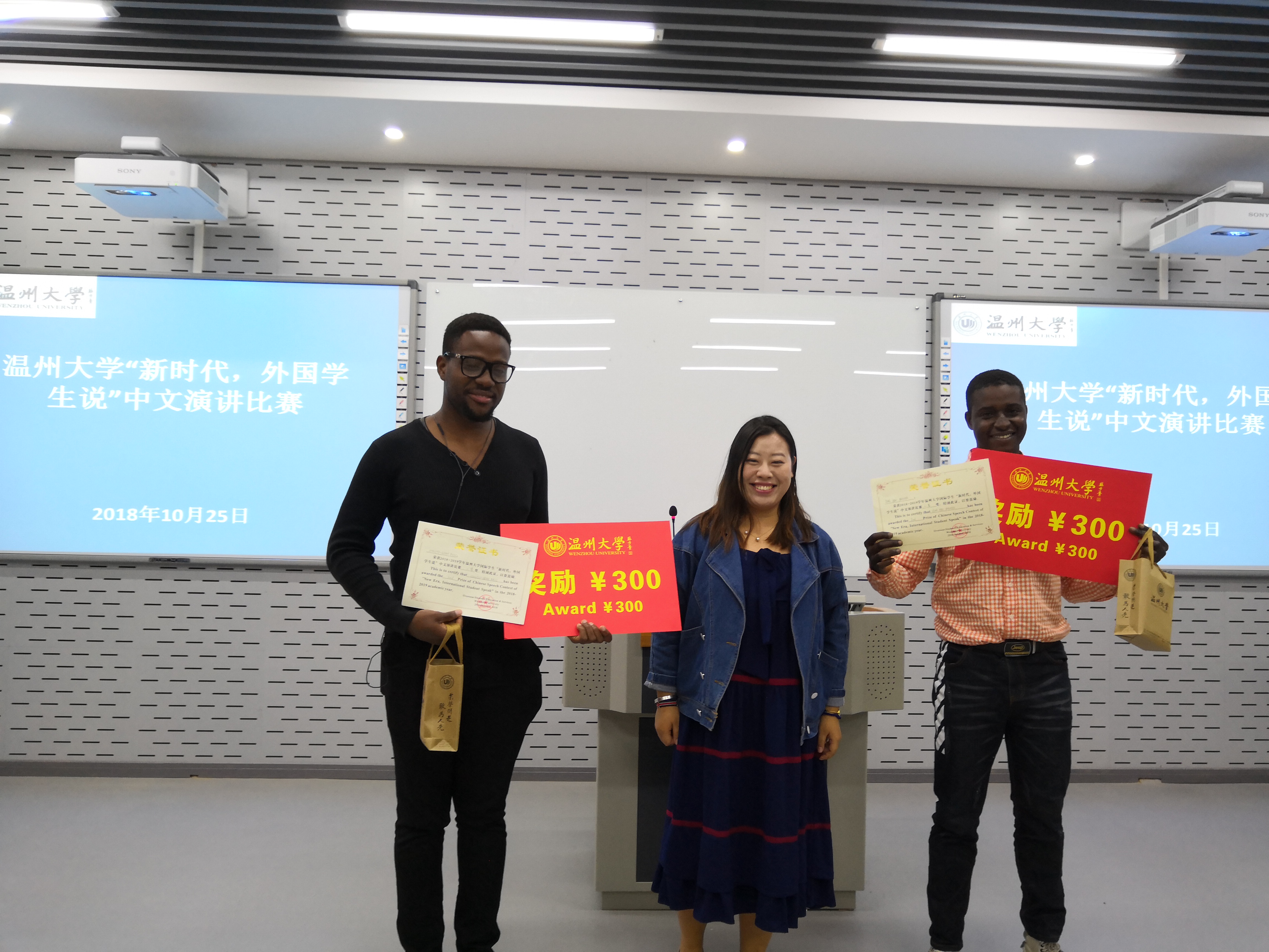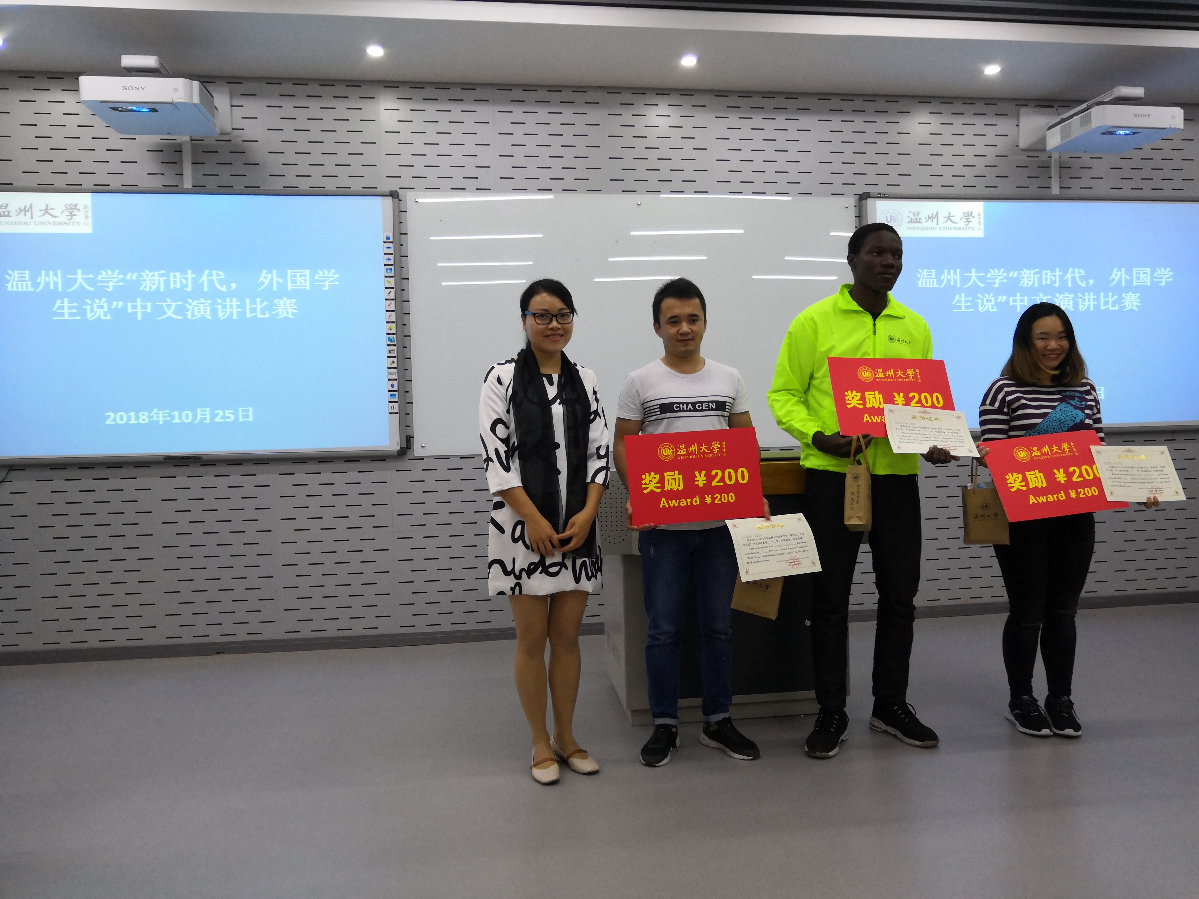 过中秋节为切入点,对比了自己国家的传统节日与中国传统节日,他说在学校吃月饼过中秋节是非常温暖的一件事,让他体会到家的感觉。来自加纳的王汉别出心裁,以一个“来自加纳的小伙子的故事”为主题,向在场师生分享了自己在中国学习、生活的有趣经历,他的演讲诙谐幽默、语言流畅,赢得阵阵掌声。来自塞拉利昂的JENG ABU BAKARR谈到他眼中的中国时说道,中国的科技发展、快捷支付方式、畅通的交通网络和便利的出行方式都让这里的生活变得非常舒适,他期待今后能在中国继续深造,走进更多城市,感受这里的一切。活动最后,评委老师分别为获得一、二、三等奖的学生颁奖。
