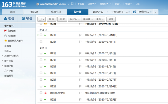 (1)将课程视频传至班级邮箱,或直接发送给一些学生。