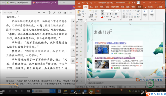 (2)打开教学PPT和电子课本,共享屏幕,正式开始课程教学。教学进行时,教师既可以在屏幕上展示PPT,也可以进行板书。一般在教师讲解过程中,要求学生静音、或保持安静,但允许学生有疑问的时候随时打开麦克风向教师发问。在教师讲解结束后,会进行造句或问答练习,根据练习的具体内容,或请学生单独发言,或是教师与单个学生交流,或令学生与学生相互交流,教师会根据具体情况明确指示学生打开或关闭麦克风。在教学过程中,老师和学生都能熟练运用ZOOM会议系统的功能,教学过程进展能够始终保持流畅,迄今尚未因技术原因产生过任何中断、未出现过任何问题。