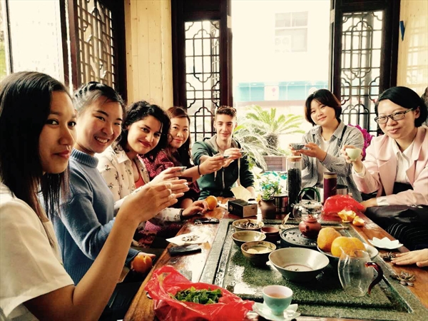 经过一下午的晾晒和最后的炒制,大家终于拥有了自己的茶叶!在茶道老师的仔细讲解下,留学生们了解了不同茶叶所对应的不同茶具,最令人期待的环节就是品尝自己采摘、制作的茶叶。新鲜制成的茶叶清香扑鼻,带着春天自然的气息、中华千年的醉人韵味。在这暖春午后,一握香茗,围坐师友,共享中国文化之幽深美妙,体验活动完美结束。