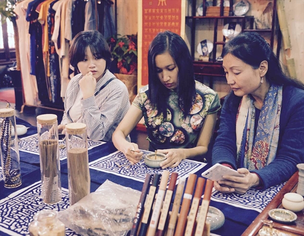 穿上旗袍的留学生和中国大雅之香道更配哦。在邢艺矇老师的耐心指导下,留学生学习了转香的制作方法,了解了沉香的历史和使用技巧,也品评了不同产地的多种沉香。在袅袅香薰中,时间盘桓,空间流转,大家仿佛都变身旧时少年闺秀,吟咏“燃我一生之忧伤,换你一丝之感悟”的诗篇。