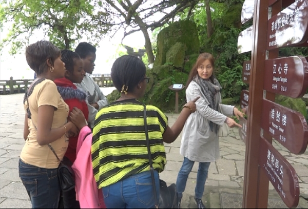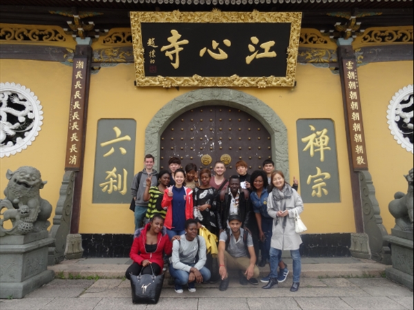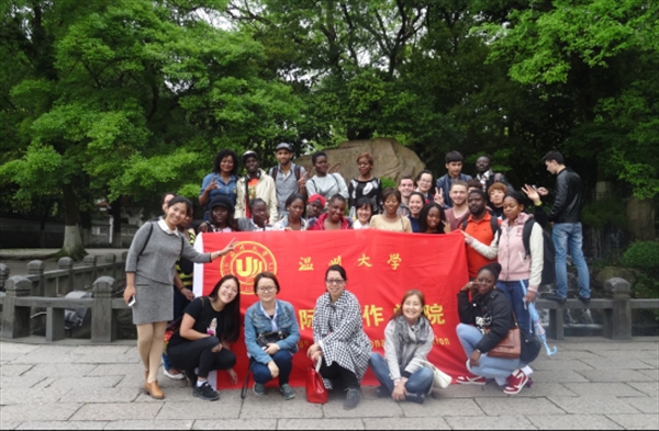 于4月23日组织留学生于江心屿开展语言实践活动,四十多名留学生参加了此次活动。
