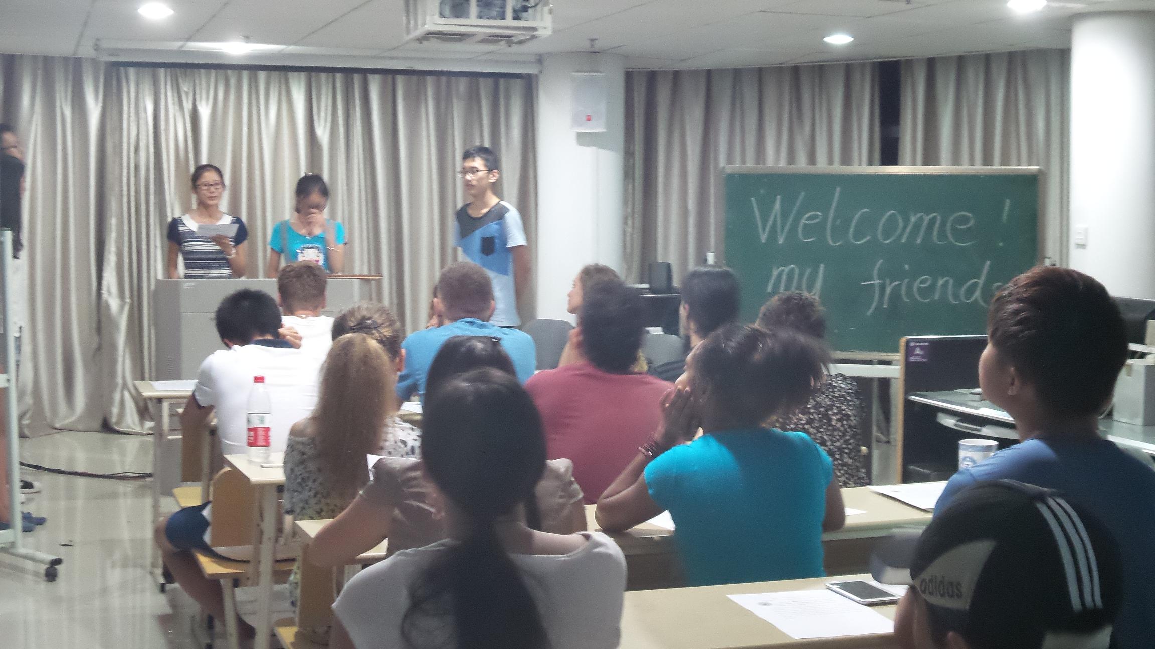 学生会留学生部召开了留学生新生座谈会。座谈会由学生会留学生部部长胡瑜瑜、副部长王树培等组织,留学生辅导员陈敏青老师出席,全体留学生新成员参加,新生单静怡(英文)和陈姿妤(中文)主持。