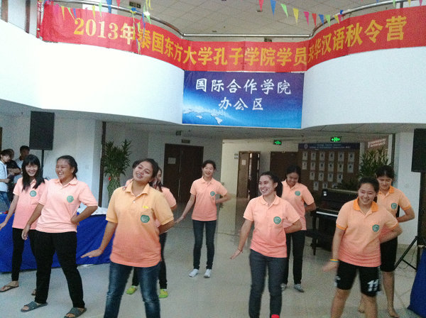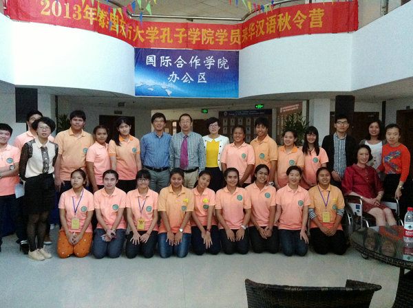 为期两周的泰国东方大学孔子学院学员来华汉语研修秋令营于10月25日圆满落下帷幕。下午4点,全体营员及任课教师欢聚一堂,在专家楼三楼大厅举行了闭营仪式。国际合作学院院长严晓鹏、党总支书记朱建平、副院长陈军、泰国东方大学孔子学院中方院长陈素云等出席。