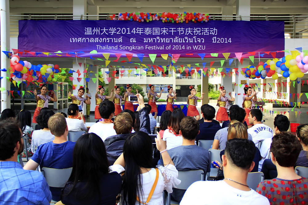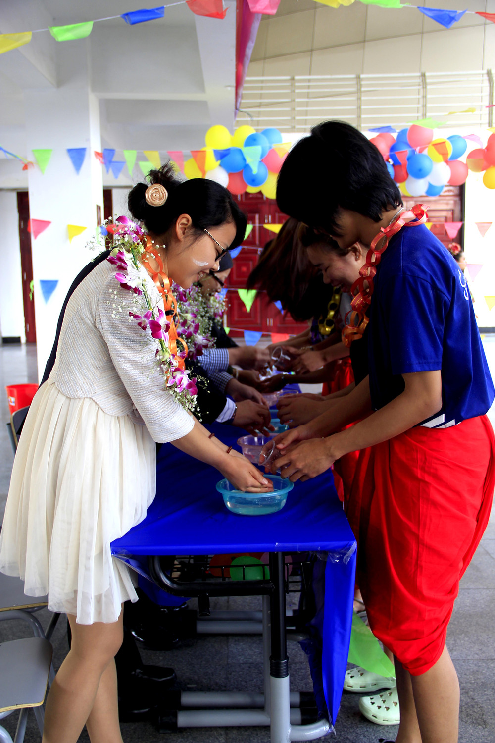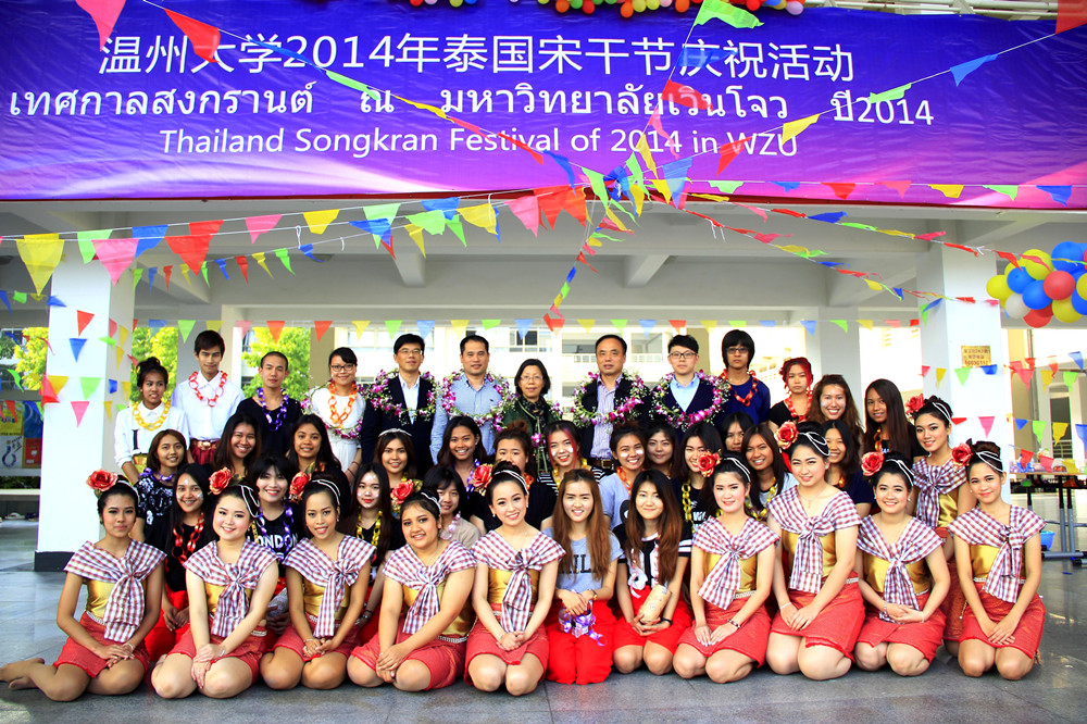 于4月14日举行2014年泰国宋干节庆祝活动。校外事处处长叶苗、团委书记杨立淮、国际合作学院党总支书记朱建平、副院长陈军及部分教师和学生代表参加了此次活动。
