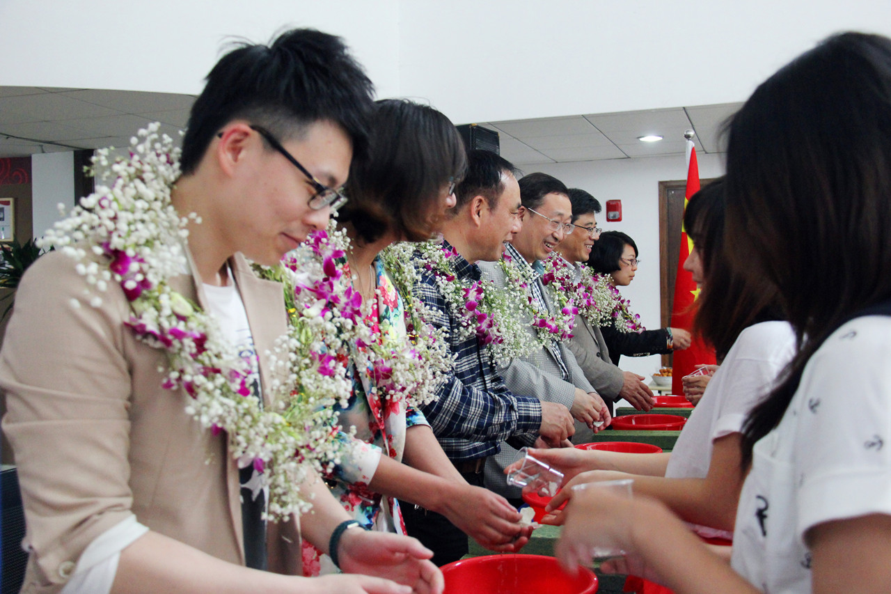 “宋干节”是泰国一年之中最为盛大的节日,其重要程度相当于中国的春节,在宋干节期间,泰国人会举行洒水仪式,载歌载舞迎接节日的来临。4月17日,泰国留学生在南校区专家楼举办了宋干节庆祝活动,国际合作学院全体教工,团委、外事处相关领导、老师,全体泰国留学生及部分其他学生参加了此次活动。