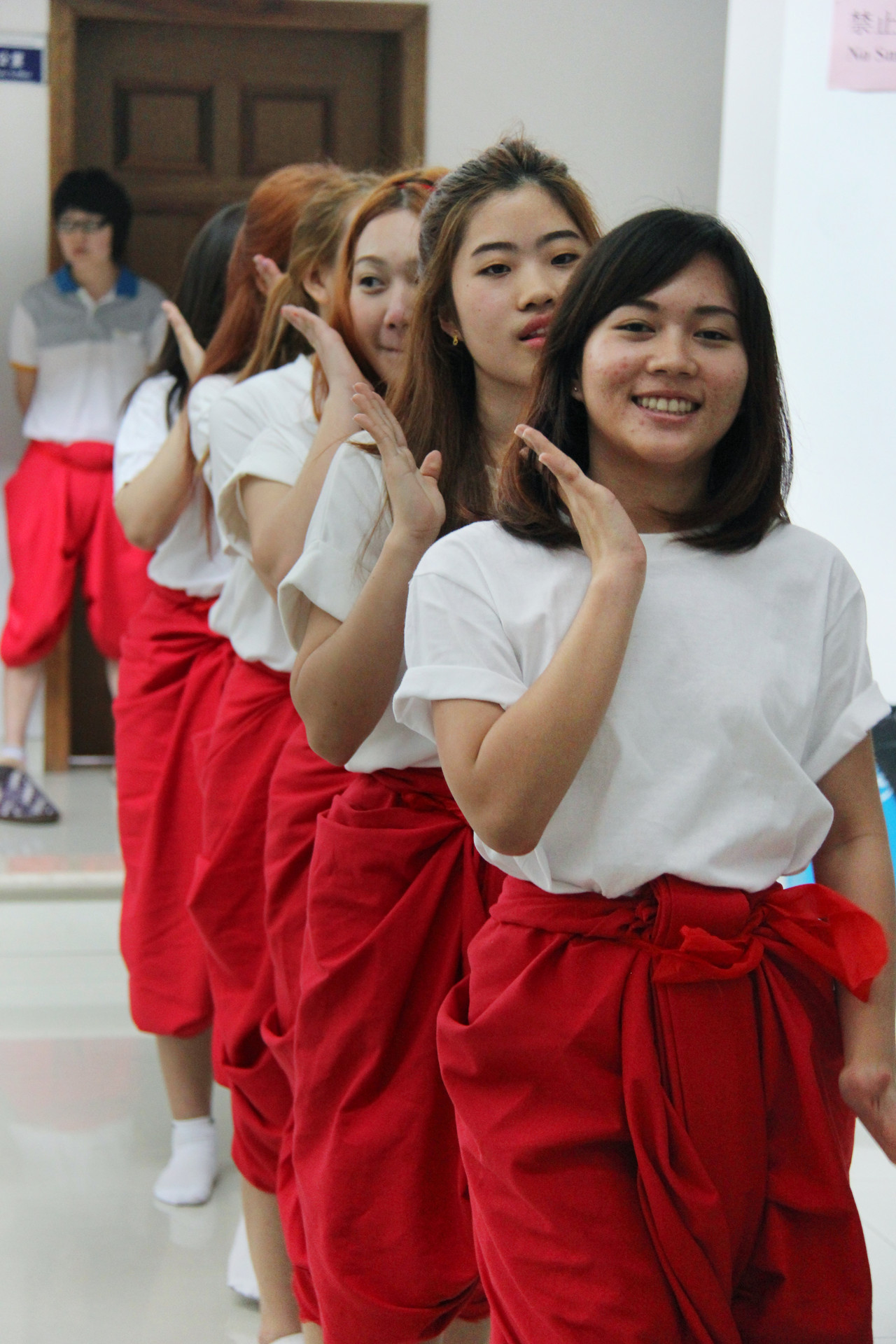 在传统的泰国新年音乐《porn pii maii》中,活动拉开了序幕。泰国留学生首先用还不算太流利的中文向观众介绍了宋干节的历史、习俗,紧接着,音乐变换,数名泰国学生排着整齐的队形,以边唱边跳的形式,向大家展示了具有异域风情的舞蹈,获得掌声不断。在洒水祈福环节中,泰国学生把合着香水和鲜花花瓣的水缓缓滴在老师的手里,以表达对长辈的爱戴和尊敬;老师则把手中的水滴轻洒在学生们的额头,代表对他们的新年祝福。期间,留学生还亲手制作了“色,香,味”俱全的各式泰国小点心,让全场的师生品尝,赢得啧啧称赞。活动在全场师生欢乐的互动舞蹈中结束。
