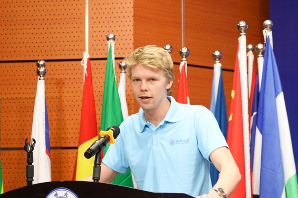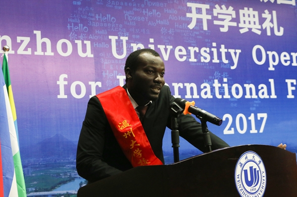 2016级软件工程专业研究生、校国际学生干部ADOFO MICHAEL ADJEI作为老生代表发言。他分享了自己留学温大的学习、生活感悟和收获,并向新同学送上寄语。2017级机械工程专业、英国籍学生FRANKIN GEORGE作为新生代表发言。他介绍了自己留学温大的原因和未来的人生规划,并希望自己能学好语言和专业知识,拓宽眼界,成为促进中英两国学生交流的桥梁和纽带。