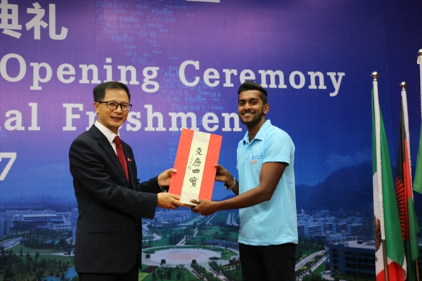 (留管部)老师,2017/2018学年国际学生校长奖学金一等奖获得者、2017年浙江省政府来华留学生奖学金二等奖获得者以及全体国际新生参加了典礼。开学典礼由555电影