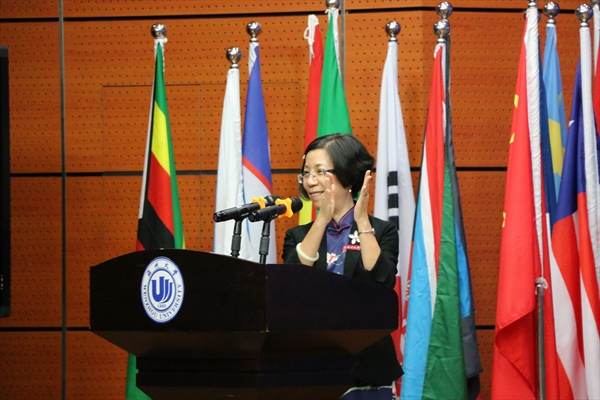 (留管部)副院长兼副主任熊勇作词,音乐学院副院长王文韬作曲。熊勇介绍了歌词创作过程及歌词的含义。10位国际学生饱含深情的中文演唱赢得了全场热烈的掌声。