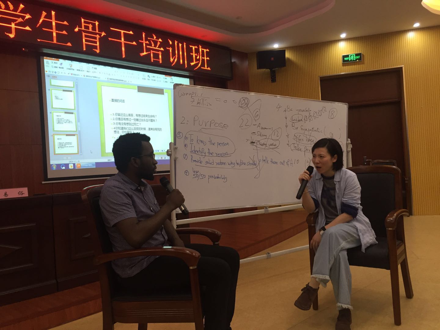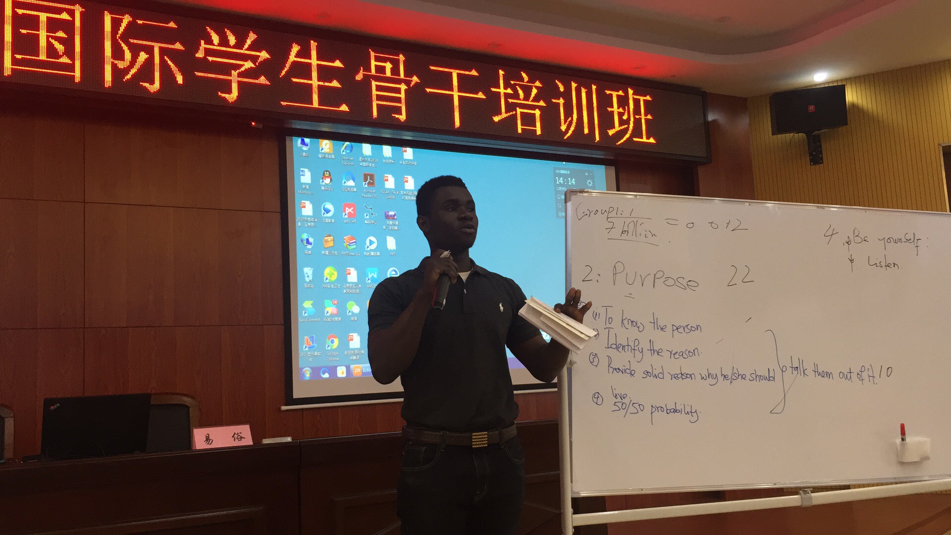第一期国际学生骨干培训班在北校区3号楼203报告厅顺利举行,来自14个国家、8个学院和8个专业的65名国际学生骨干参加了此次培训。