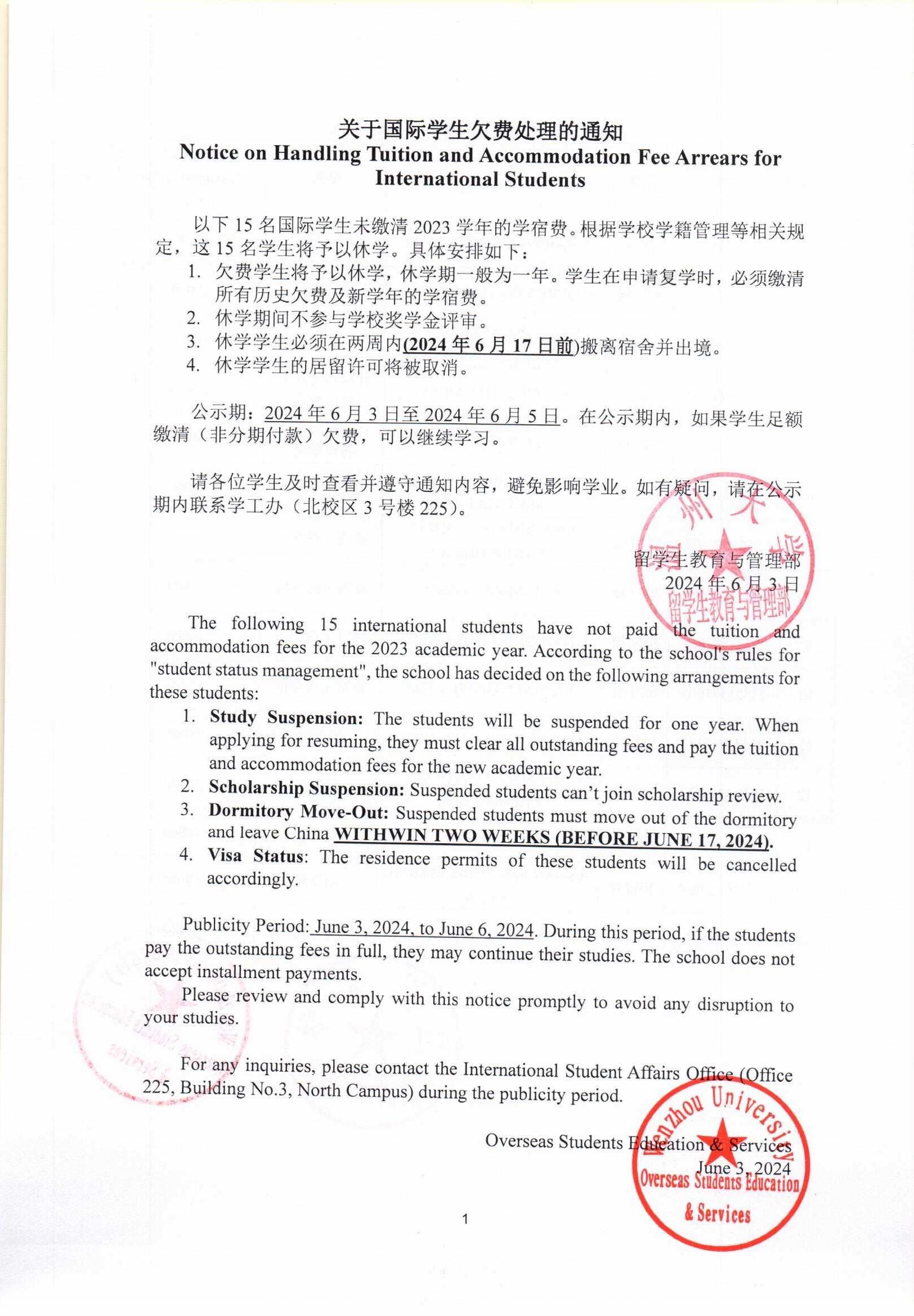 Note: If students have already been in the process of forced dropout, this notice won't change the result.