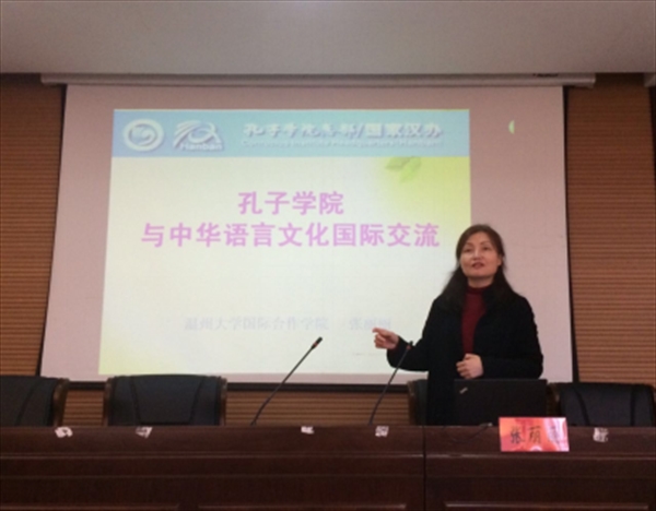 4月15日下午,555电影 国际汉语教师张丽丽副教授,应平阳县教师发展中心邀请,以《孔子学院与中华语言文化国际交流》为题,为平阳县中小学“国学智慧”培训班作了一场别开生面的讲座。