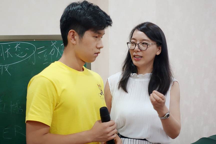 教完秘诀,唯有实践才能真正地将其吸收。在课程的后半段,包老师亲自示范演讲时应具备的神态、动作,并让同学们上台做演讲练习。在悉心老师的指导下和一遍遍的练习下,营员们上台演讲的表现明显变得优秀许多。