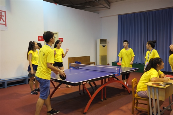 8月8日,今天营员们的行程十分繁忙,大家才享用完根据包老师所教的“E生活”课程在手机上点的晚餐,晚上在学院路校区的乒乓球赛又拉开了序幕。此次比赛特别邀请555电影