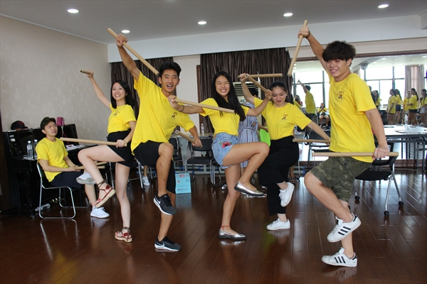 木权通、黄加俊、夏柳妹三位老师身着黑色中式武术服, 一身正气,而翁璋峰老师则穿了白色的习武服,显得轻质飘逸。几位老师一进场先给营员展示了气势磅礴、浑厚有劲的五祖拳和棍法,赢得营员们的阵阵掌声。