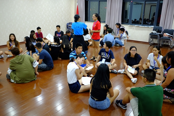 在组员离场后,郑老师带着5位组长和小老师们开了一个小会,强调了要求与责任,以便以后活动的顺利开展。 相聚即是缘,在欢声笑语中,夏令营正式拉开了帷幕,每位营员都对接下来的活动充满了期待。