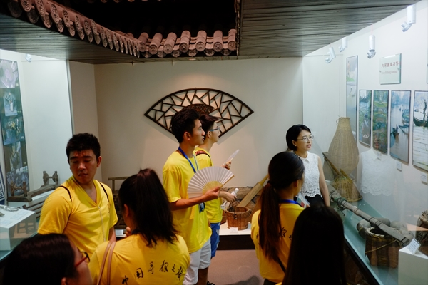 馆内陈列有温州民间生产习俗、温州民间生活习俗和温州民间工艺美术等三个方面的内容。营员们跟随着解说员的脚步,聆听着详细的解说词,慢慢欣赏着温州精彩的民间文化。