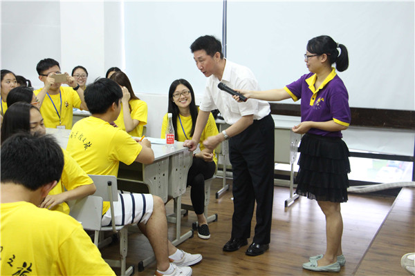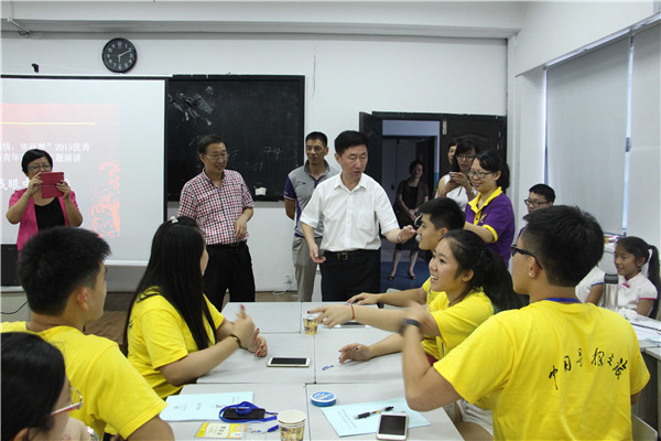 雷司长一行到达时,华裔青年们正在上主题演讲课,雷司长轻轻走到教室后排,坐在营员们中间,认真聆听华裔青年们演讲。来自葡萄牙的周保罗回忆起童年时与奶奶一起生活的快乐时光:“儿时的家乡天蓝水清,然而当我再回到家乡时却发现虽然楼高了,路宽了,但是水脏了,天空变成了灰色。我感到心急如焚,我的中国梦就是让家乡的环境恢复到童年时那样的美好。”雷司长对周保罗的演讲表示赞许,从营员的演讲中他感受了华裔青年对祖国深深地爱。他与营员们亲切地握手交谈,仔细询问了他们的学习、生活情况,邀请他们常回家看看。雷司长表示虽然之前素昧平生,但是见到营员们他感到分外亲切,因为大家都是华夏儿女,是中华民族大家庭的一份子,有着共同的“根”。雷司长指出中国拥有5000年的悠久历史和灿烂文化,近代以来,中华民族遭受了巨大的磨难,但凭借着自身的努力最终屹立在了世界民族之林,作为炎黄子孙的华裔青年们应该了解祖国的过去与现在,为祖国的繁荣富强贡献自己的力量,要充分利用自己的优势,博采众长,成为融通中外的优秀人才,用自己的努力成就自身,成就家庭,成就中华民族。