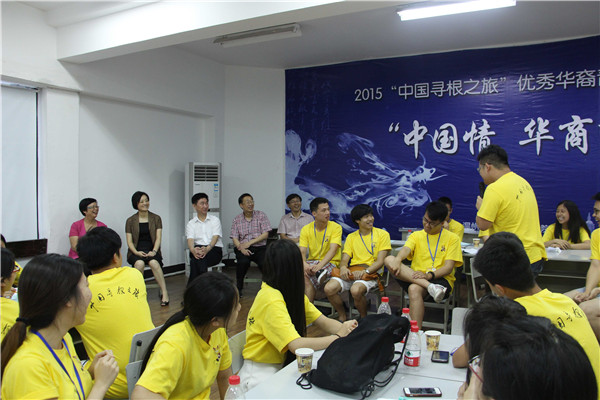 7月20日下午,国务院侨办文化司司长雷振刚,温州市外侨办主任邱华萍,副主任许捷等来到2015中国“寻根之旅”优秀华裔青年商务营看望来自9个国家的45名营员。