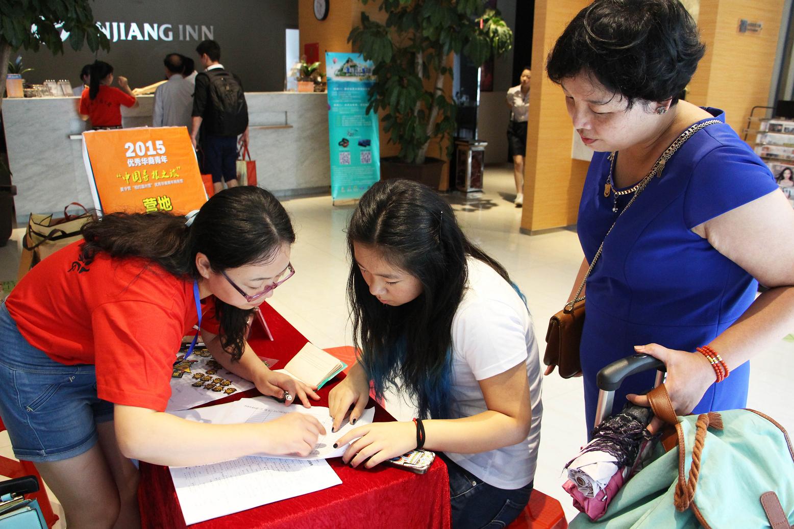 由于受到台风影响,华裔青年们返乡的过程并非一帆风顺,但回家的渴望消散了途中辗转带来的艰辛。报到现场,初次见面的营员们很快就熟识起来,他们用英语、意大利语、法语、温州话兴奋地交谈着,他们中有些是第一代移民,有些是第二代、第三代华侨后裔了。来自丹麦的Catherine 和Louise姐妹,在当地出生,在家里基本上不用中文交谈,所以只能说一些简单中文,这次父母给她们报名就是希望她们能接触些中国文化,增强对家乡的了解。来自美国的王品淼是青年营的老朋友了,一到报到大厅,就给指导老师送上一个大大的拥抱,这已经是他第三次参加寻根之旅夏令营了,他说每次回来都能感受到家乡的变化,刚刚完成大学学业的他,希望能将个人的前途规划与中国发展机遇结合起来。