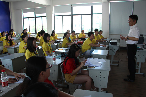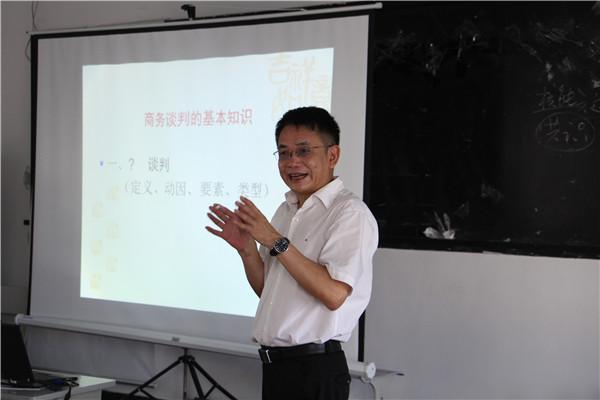 商学院来新安教授为营员们进行商务谈判技巧培训。来新安教授为啄木鸟集团、武汉新联大集团、以及温州很多企业担任首席谈判代表,具有扎实的理论功底和丰富的企业管理经验。