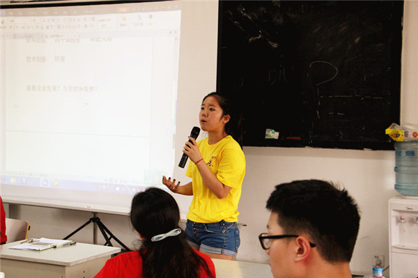 讲座结束后,营员们还展开了一场激烈的头脑风暴,包含丽老师主持,她用讲座中提到的关键词激发营员们展开思考,营员们既为中国综合国力不断提升感到骄傲,也为日益凸显的环境问题感到担忧,有的营员结合自己所学专业为国家经济发展和环境保护献计献策,有的营员谈到了家族事业的未来与自身责任。他们普遍都认为过去的海外华商起点低,开始从事的行业科技含量也较低,作为后代的他们,有责任运用所学提升家族事业的科技含量,经营科技含量更高的产品,使事业跃上新台阶。