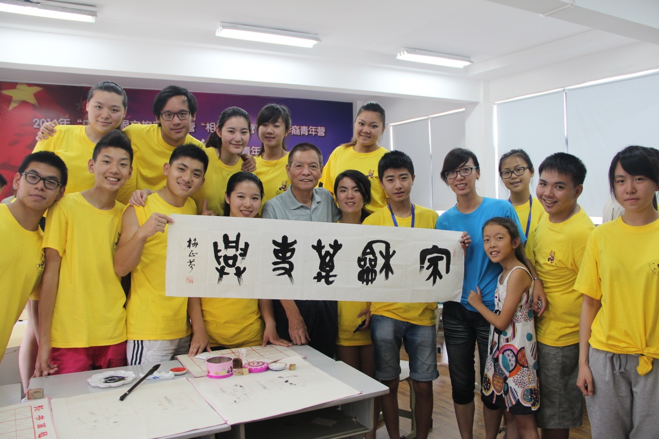 三位老先生应营员的要求耐心地书写各种诗词、俗语和他们的中文姓名,并慷慨地赠予他们。对每一位营员,老先生们都细致地询问要写什么,怎么写;下笔时如行云流水,一幅幅草书、行书、隶书迅速呈现;写完后老先生总是谦虚地说,时间太紧张,写得不好,望见谅。营员们拿着写好的《将进酒》、《水调歌头》、《山行》、“天天向上”、“恬淡致远”、“家和万事兴”,如获至宝。