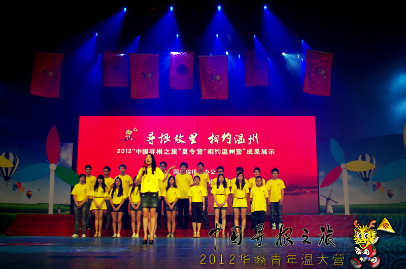 7月26日下午,海外华裔青年文化温大营的全体营员们来到温州广播电视中心的演播大厅参加“寻根故里,相约温州”2012“中国寻根之旅”夏令营“相约温州营”成果展示会的节目录制。