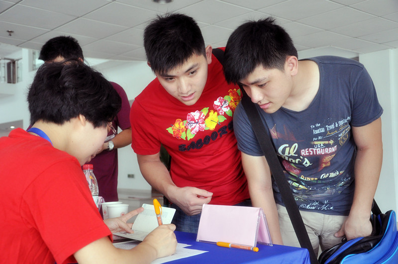 报道当天,温大南校区专家楼的报到处一片热闹,普通话、英语、荷兰语、意大利语、法语……,不时冒出的几句温州话,让这个小小的报到处瞬间有了国际化氛围。营员们在完成一系列的报到手续后,领取了营服、营牌、营员手册,正式入住555电影