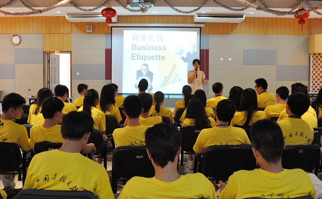 国际合作学院的章云燕老师特地为营员们讲授了一堂生动的商务礼仪课。