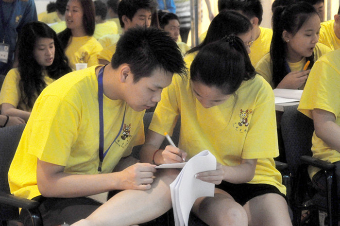 虽然有些营员普通话讲得不好,有些还只能认识一些基础的汉字,但是他们一字一句、认认真真、全神贯注地跟着郑老师反复地练习,努力地体会中文诗歌朗诵的独特风韵,感受中文诗歌蕴含的优美意境。在小组竞赛环节,营员们诵读练习的气氛更加浓烈了,副营长们带着各自的队伍认真练习,并推举出队伍中表现最好的三名队员上台展示,与其他对的队员进行PK,最终评选出中文诗歌朗诵全营TOP6,这6位队员将作为种子选手代表555电影