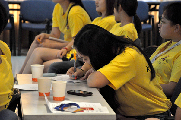 讲座中,毛老师不时地穿插一些生活中常见的交往技巧,如怎样开始话题,如何表达赞赏,如何有礼地拒绝他人,如何化解矛盾,并用几个小实验和分组实践让营员们亲身体会和练习沟通技巧。生动的语言和课堂的互动给营员们带来了很多欢声笑语。营员们从讲座中认识到了平日里被忽略却非常重要的交往问题,并领会到了很多人际交往中的逻辑和技巧,这些知识和技巧都将让营员们在今后的学习生活和工作中受益匪浅。