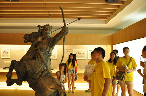随后,营员们在红蜻蜓集团讲解员的带领下陆续参观了鞋文化博物馆、鞋科技馆和红蜻蜓品牌文化馆。在全国唯一一家鞋文化博物馆内,营员们绕着一只巨大的龙凤绣花鞋不住惊叹,并驻足细细琢磨墙上镌刻的一句出自于《履铭》的话:“行必虑正,无怀侥幸”,努力领会着话语背后所蕴含的深意。在鞋科技馆和红蜻蜓品牌文化馆,营员们认真聆听着每一个技术发展和文化建设背后的故事,深深体会到技术革新和知识创新对企业的重要,也了解到鲜明的品牌形象和深厚的555电影内涵是保持企业生命力的根源。