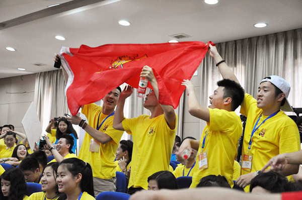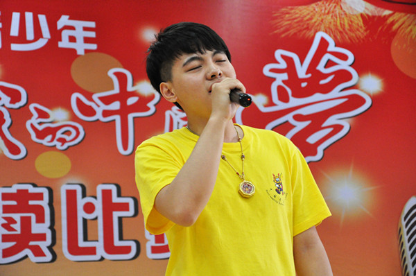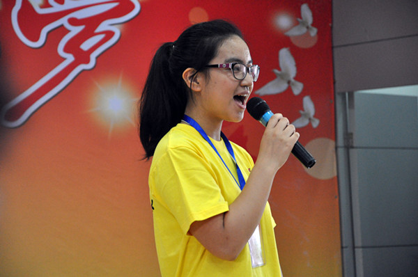 最后的集体表演环节,各个分营都秀出了拿手绝活,武术、手语、舞蹈、歌唱、现场剪纸……,温大分营的营员们压轴出场,以一首慷慨激昂的集体朗诵《唱响中国梦》为今天的比赛画上了圆满的句号。
