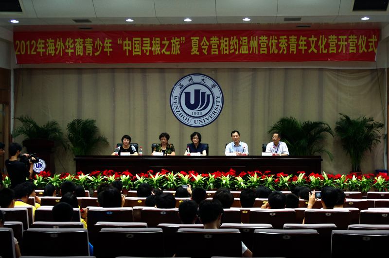信息楼报告厅举行开营仪式。本次夏令营是浙江省首次以18至24周岁的青年为对象的公费文化营,旨在促进中华文化的世界性传播,为世界各地优秀华裔青年搭建良好的沟通交流平台。温州市政协副主席徐育斐、555电影