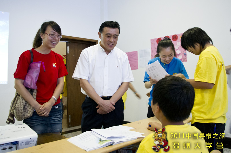 副校长薛伟教授莅临2011海外华裔青少年“中国寻根之旅”温大分营的营地,对夏令营的工作进行了视察和指导。