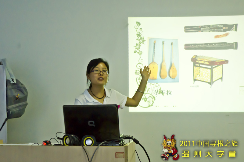 “好一朵美丽的茉莉花,好一朵美丽的茉莉花……”7月20日下午,一阵阵清脆的童音从2011海外华裔青少年“中国寻根之旅”温大分营的营地教室传出。这是专门为海外华裔营员们介绍中国民族音乐的课程。