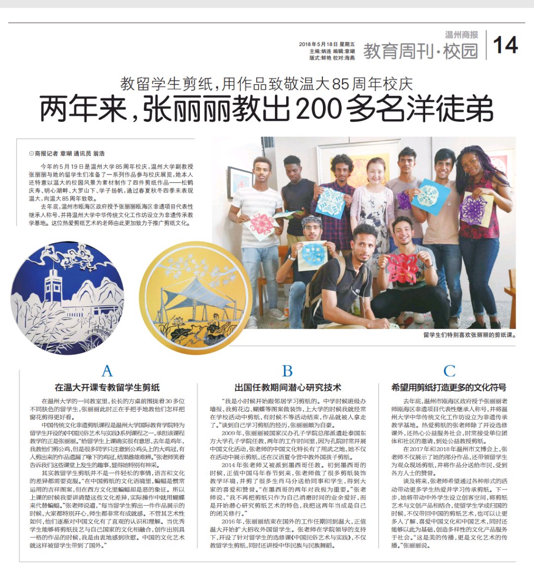 上一篇:温州新闻:怎样跨国界传播传统文化?温大的老师教留学生这样做