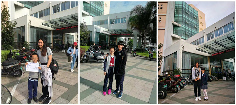 活动从早上九点接学生开始。小朋友在爸爸妈妈的陪同下来接大哥哥大姐姐。