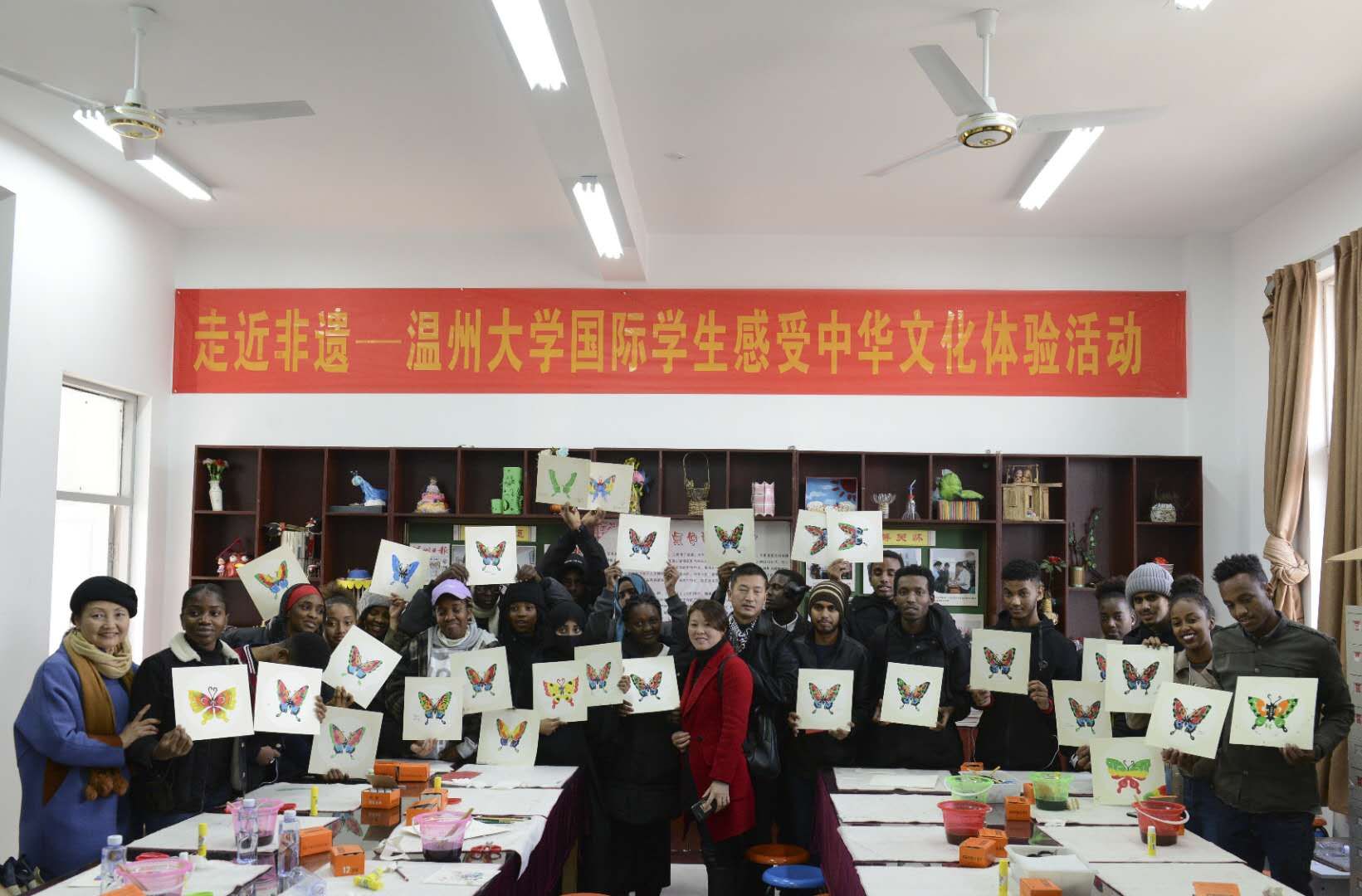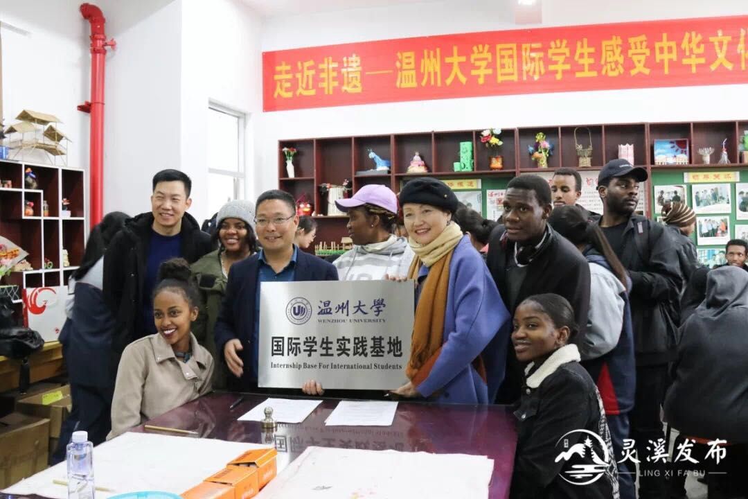 国际学生实践基地”授牌仪式。留学生们来到灵溪民间艺术馆和动车站广场分别参观剪纸工艺品和建筑,国家级“非遗”传承人吴明月老师为留学生们倾情表演了单档布袋戏,大家看的如痴如醉。