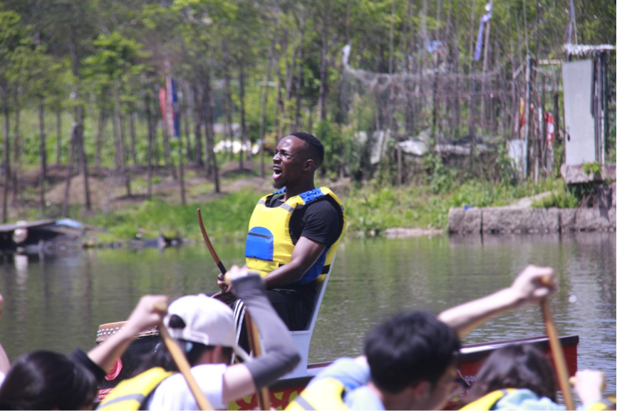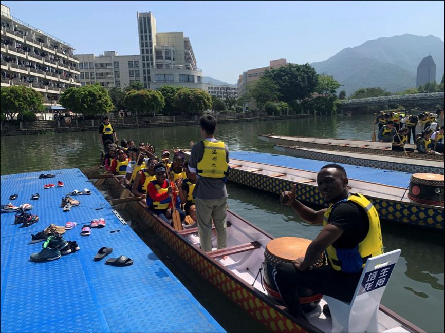 “从一开始的摇摇晃晃,甚至是翻船,到现在我们能顺利的划起来,感觉特别有成就感。”来自肯尼亚的KANDIE同学说起自己赛龙舟的训练过程,很是兴奋。