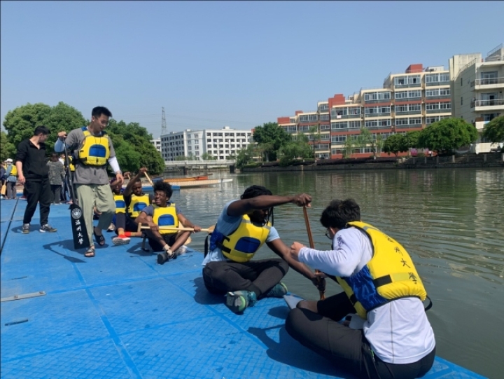 体育与健康学院牵头组织了一场校园龙舟赛活动,各个学院都组建队伍参加,没想到的是,留学生们也组队了。“能够亲身参到中国的传统体育活动,是人生中不可多得的经历。” 来自土库曼斯坦的YBRAYYM GYLYCHLYYEV表示,很多学员都会在训练结束后把照片分享给家人或者发布到社交媒体上。家人和朋友看到他的分享后,纷纷给他留言打气,希望他在比赛中有好的表现。