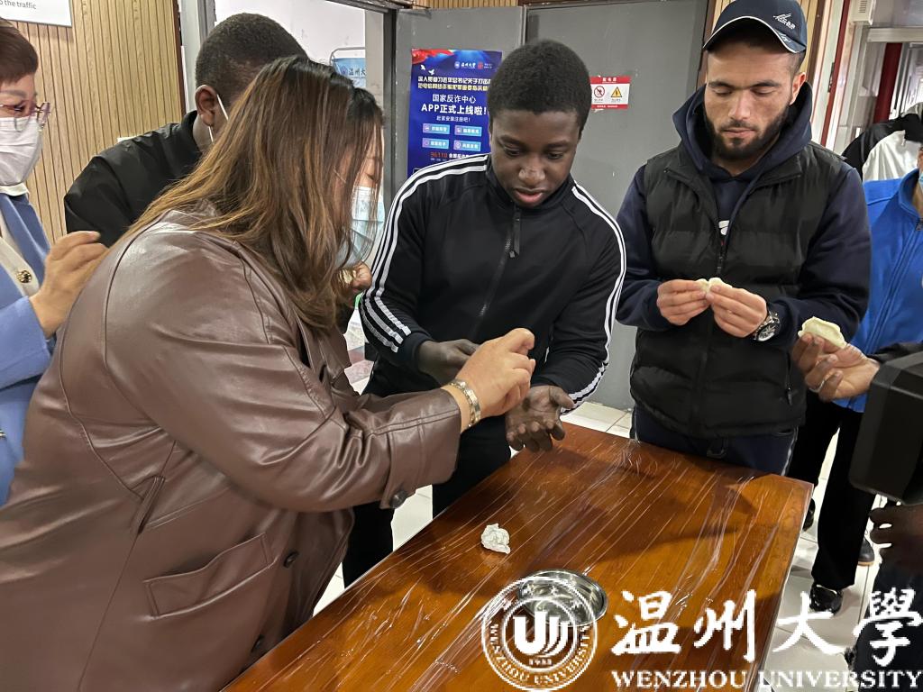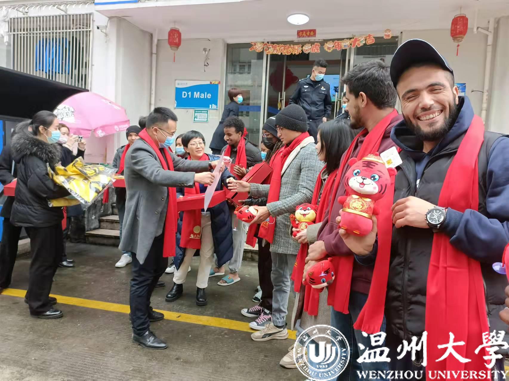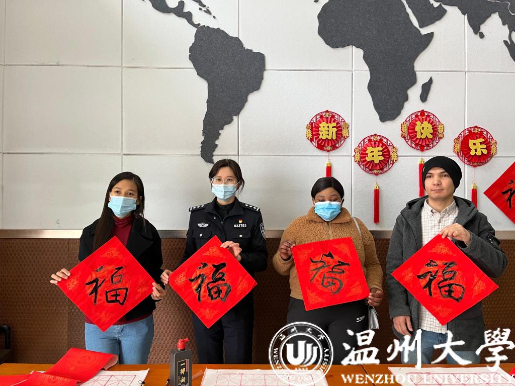 党委副书记庄兴忠、市教育局、瓯海出入境管理大队、茶山派出所、中国银行温州分行、学校相关部门负责人一起参与了活动,并将充满中国味的新年祝福送到每一位留学生手上。