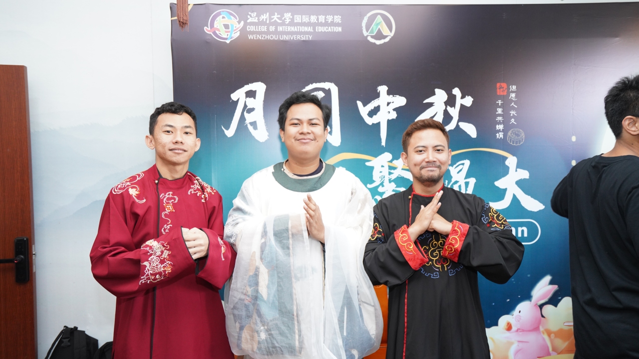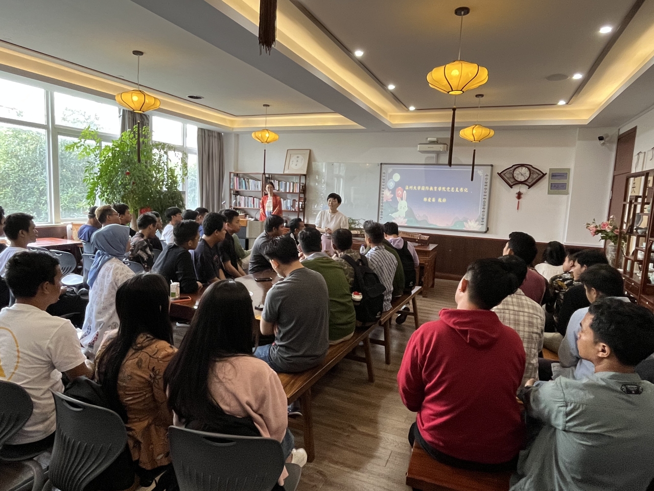 举行中秋文化体验活动,来自印度尼西亚的48名温大青山班学员与555电影