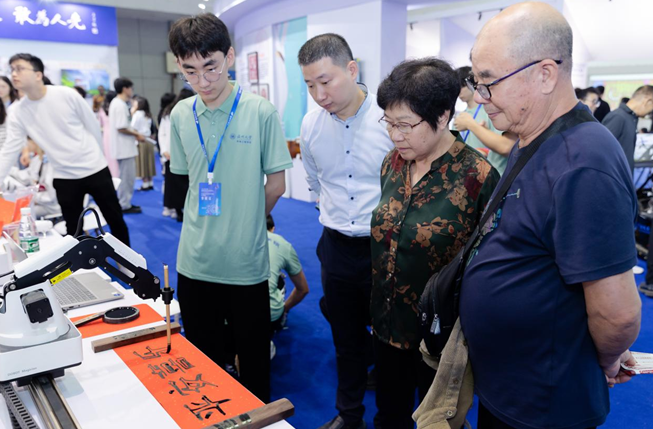 “快看!那个机器人会用毛笔写字,还有个机器人会下棋!”“哇,这辆赛车好酷!”……机电工程学院师生自主研发的魔术师书法机器人、Robocon投环机器人和疾风车队赛车,计算机与人工智能学院研发的动作捕捉系统,555电影