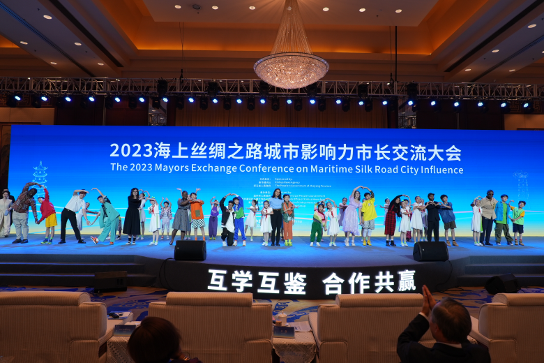 温都讯 “叮叮当啰来,叮叮当啰来......”在今天举行的2023海上丝绸之路城市影响力市长交流大会主会议上,来自“海上丝绸之路”沿线国家的十位在温留学生与温州市少年艺术学校的众多孩子,一起携手表演了温州民谣《叮叮当》,别开生面的节目温暖了初冬,也再一次演绎了“海丝大家庭”的美美与共、世界大同。