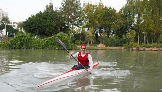 留学生BURKOV MIKHAIL(中文名卜麦克),乘皮划艇畅游塘河,沉浸式感受百里塘河的千载风华,体味瓯越文化的独特魅力。