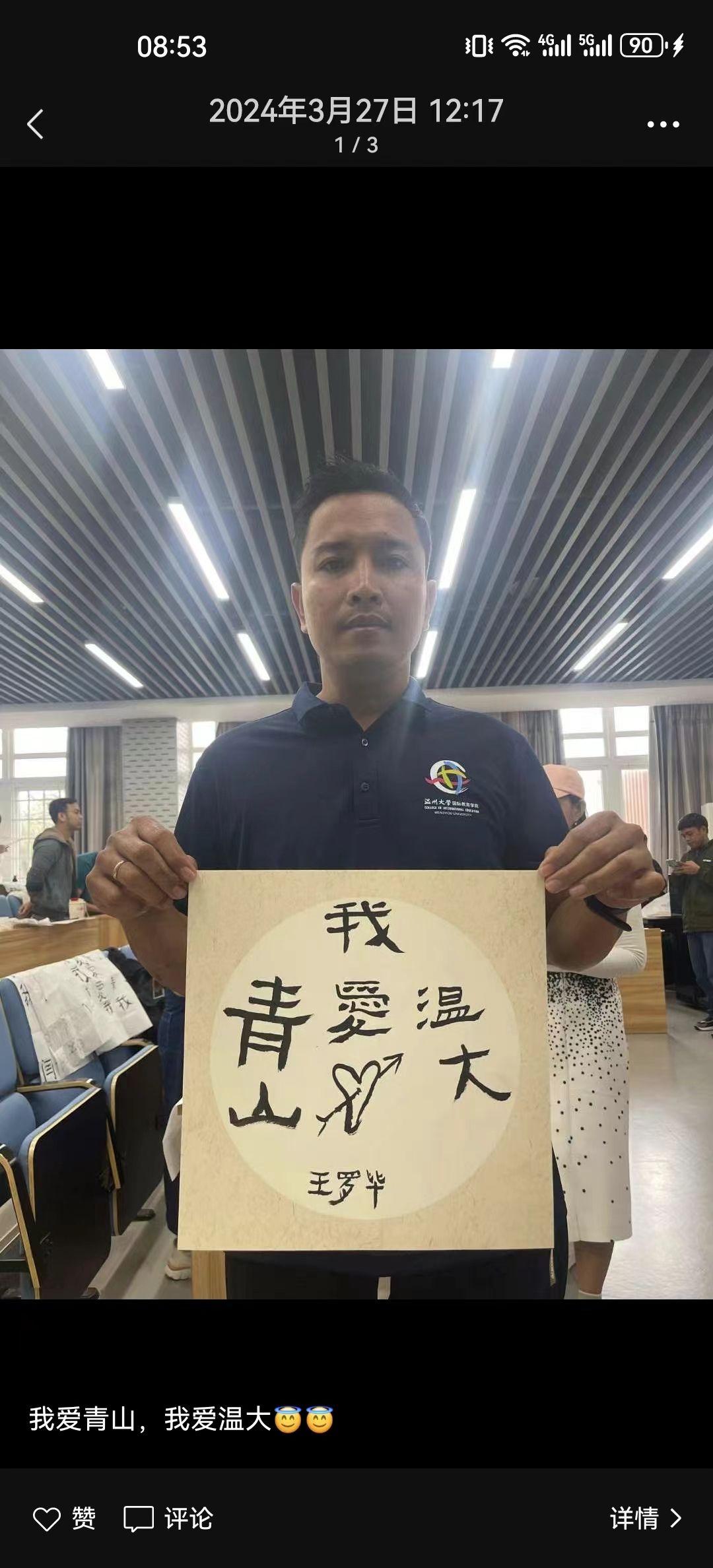 首届学员安德鲁在毕业典礼上的发言可见一斑。他分享道:“本次学习不仅提高了同学们的中文水平,也让我们感受到了中国传统文化的独特魅力,亲身感受到中国的壮丽河山与秀美风景。”在温州学习“满月”之际,王罗毕在微信朋友圈上传了手持绘画、书法作品的个人照片,配文是“我爱青山,我爱温大”,图文饱含感激之情。