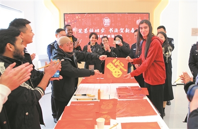 除了竹竿舞,这群在温留学生还体验了捣年糕、写福字等特色活动。娜美第一次握上毛笔,一笔一画地书写着“福”字和春联。她捧着“福”字感慨道:“春联上的每一个字都蕴含着吉祥和美好的寓意,这让我深刻体会到了中国人对和谐、好运的追求。我更加热爱中国文化了。”